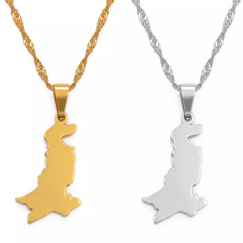 Plated jewelry with map of country.